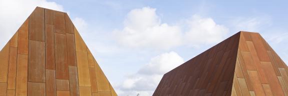 Ihr Museumsneubau schafft durch seine architektonische Gestalt und die markante Bekleidung Bezüge zum historisch geprägten Umfeld.