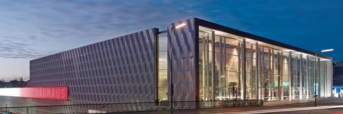 Das BAUHAUS Halensee in Berlin liegt parallel zur Bahntrasse und am prominenten Endpunkt des Berliner Kurfürstendamms. Auf einem schwierigen Grundstück mit Geländesprung wurden die Berliner Architekten Thomas Müller Ivan Reimann mit ihrem Projekt sowohl der städtebaulichen Situation als auch der Funktion eines Fachcentrums gerecht. Sie konzipierten das zwischen Stadtautobahn und S-Bahn-Trasse gelegene Gebäudeensemble aus verschiedenen Blickrichtungen und versuchten nicht nur auf die Nachbarbebauung, sondern auch auf die angrenzenden Verkehrsräume zu antworten. Die seitlichen, bis zu 180 Meter langen Fassaden des Fachcentrums werden fast ausschließlich aus der Ferne wahrgenommen. Daher wurden sie auch für den Blick aus der Distanz gestaltet.