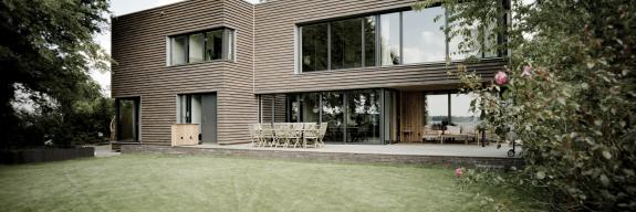 Zu den Vorzügen des Hauses zählt neben der Ästhetik die ökonomische Bauweise. Errichtet werden konnte der zweigeschossige Holzbau innerhalb kürzester Zeit. Das galt auch für die Außenwände, die sich zudem durch ausgezeichnete Wärmedämmqualitäten hervortun. Da sich alle Ziegel am gewählten Fassadensystem leicht austauschen und recyceln lassen, erfüllt die Gebäudehülle alle Anforderungen an eine moderne, nachhaltige Fassade.“