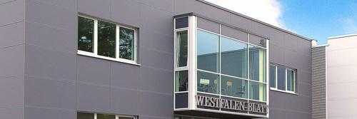 Medienunternehmen treten heute stetig steigenden Anforderungen gegenüber, denen das Westfalen-Blatt aus Bielefeld mit einem Neubau seiner Produktionsanlage begegnete. Das vielfältige Innenleben des hochmodernen Druckerei-Komplexes lässt sich an seinen harmonisch aufeinander abgestimmten Fassadenmaterialien ablesen. Für den Verwaltungsbau entschieden sich die Bauherren und Architekten für eine vorgehängte hinterlüftete Fassade (VHF).