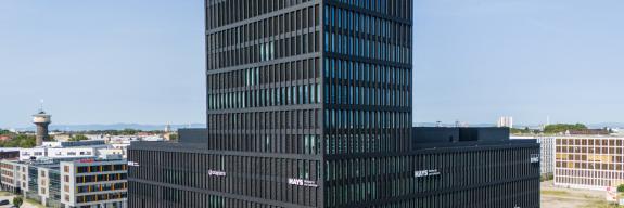 Für dieses Projekt wurden verdeckt befestigte und mehrfach gekantete Fassadenelemente aus ALUCOBOND® A2 in der Farbe Jetblack 363 verwendet. Die 4 mm starken Elemente wurden auf eine speziell entwickelten Unterkonstruktion montiert, die höchste Stabilität und eine ästhetisch anspruchsvolle Optik gewährleistet. Ein besonderes Highlight sind die säulenförmigen Fassadenelemente, die sich über zwei Geschosse erstrecken und dabei Höhen von über 7 Metern erreichen. Diese werden durch horizontal angeordnete Brüstungsbekleidungen verbunden, die der Fassade eine klare Struktur verleihen.