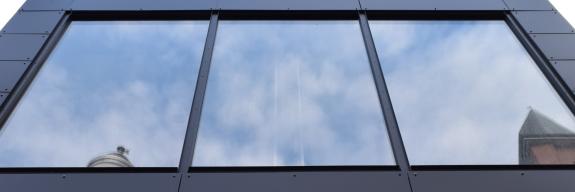 Neben der Außenfassade wurden ebenfalls die Fensterrahmen, die Aufzugstüren sowie die Innenseite der Pfosten-/Riegel-Konstruktion mit der Hochleistungsfolie verkleidet.