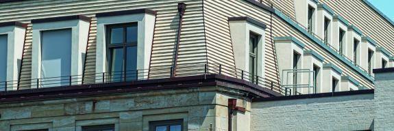 Der Ausbau der Stadthöfe erhält die Substanz der historischen Gebäude und umfasst daher wie selbstverständlich auch Ziegel für die VHF der neuen Dachaufbauten.