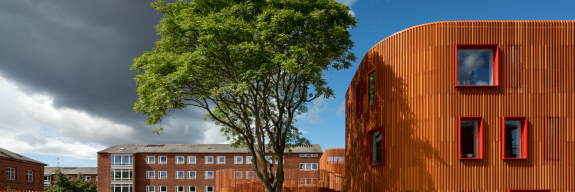 Der dänische Kindergarten liegt im Zentrum des Stadtteils Nørrebro. Die Idee des Architekturbüros COBE war es, ein dreidimensionales Dorfkonzept zu schaffen, das visuelle und physische Verbindungen zwischen der gesamten Einrichtung und den umliegenden Gebäuden schafft. Die Fassadenverkleidung aus schlanken, vertikalen Keramikquadraten schafft eine sichtbare Harmonie zwischen den aus Backstein errichteten Wohngebäuden rund um den Kindergarten - eine respektvolle Einbettung inmitten des Stadtviertels.