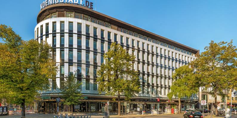Wunsch des Eigentümers war es, den historischen Charakter des 6-geschossigen um ca. 95° gebogenen Geschäftshauses mit einer Sanierung wieder sichtbar zu machen.