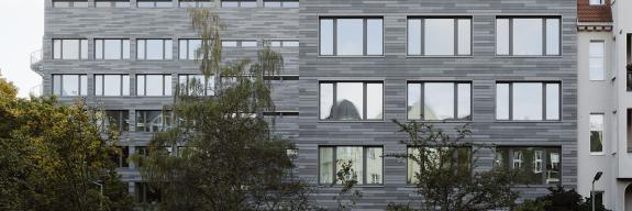 Zeitlos und modern präsentiert sich das Finanzamt in Berlin-Schöneberg nach einer umfassenden Modernisierung. Das Bürogebäude aus den 60er Jahren wurde energetisch und brandschutztechnisch mit einer VHF aus Glasfaserbeton saniert.