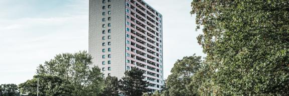 Die Nachfrage nach Wohnraum in Städten ist groß, die Fläche für Neubauten gering. Umso wichtiger, dass vorhandene Bausubstanz erhalten und ihr neues Leben eingehaucht wird. Als das Flachdach des Wohn-Hochhauses aus den 70er Jahren saniert wurde, fiel zufällig auf, dass auch die 350 Tonnen schwere Waschbeton-Fassade an den Giebelseiten umgehend demontiert werden musste.