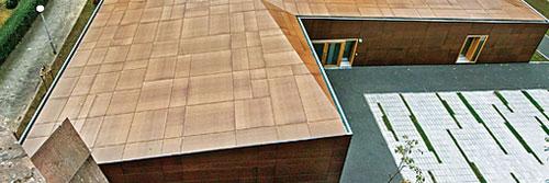 Eine vertikale Struktur der Fassade bindet im Dach alle Fassadenflächen in seinen Fugen ineinander. Die senkrechten offenen Fugen der Fassadenplatten laufen ins geneigte Dach, dann über den First in die gegenüberliegende Fassadenfläche und dort in die von den Fensterelementen ausgehende Struktur. Gleichwohl achteten Hille Architekten auf eine möglichst große Anzahl von Platten im gleichen Format sowie auf gleichmäßig angeordnete Befestigungspunkte und schufen ein Gemeindezentrum mit überzeugender Fassadenansicht. „Der eingeschossige, komplett mit Schichtstoffplatten beplankte Baukörper überzeugt durch die Einheitlichkeit, mit der Fassade und die von oben sichtbare Dachfläche behandelt wurden. Ein schlichtes, gut detailliertes Stück Alltagsarchitektur!", urteilte die Jury und sprach dem Projekt eine Anerkennung aus.